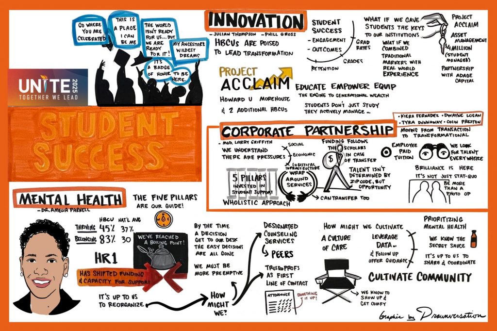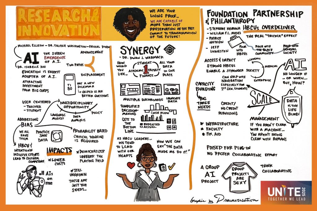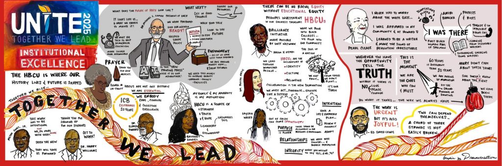 From the Gala and Plenary Sessions to the Awards Ceremony, his illustrations reflected the energy and imagination of our HBCU ecosystem. As leaders, practitioners, and students explored our five pillars:
