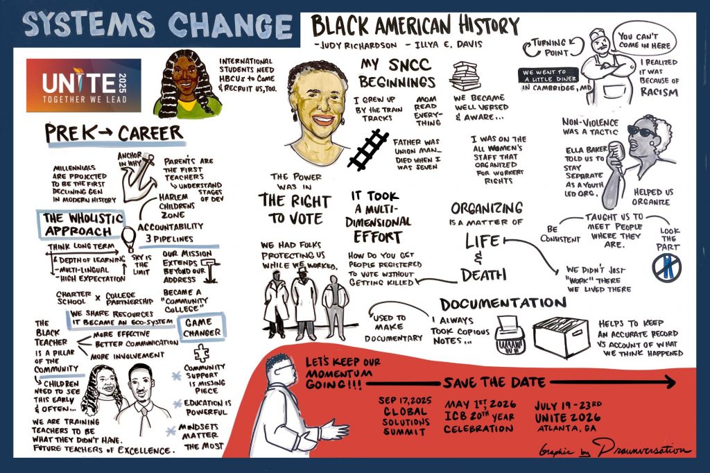 Throughout the summit, graphic notetaker and context artist Brandon Black brought the experience to life in real time. Brandon, a Cincinnati-based illustrator and founder of Drawnversation, observed sessions across the week and transformed dialogue, themes, and moments into powerful visual narratives.